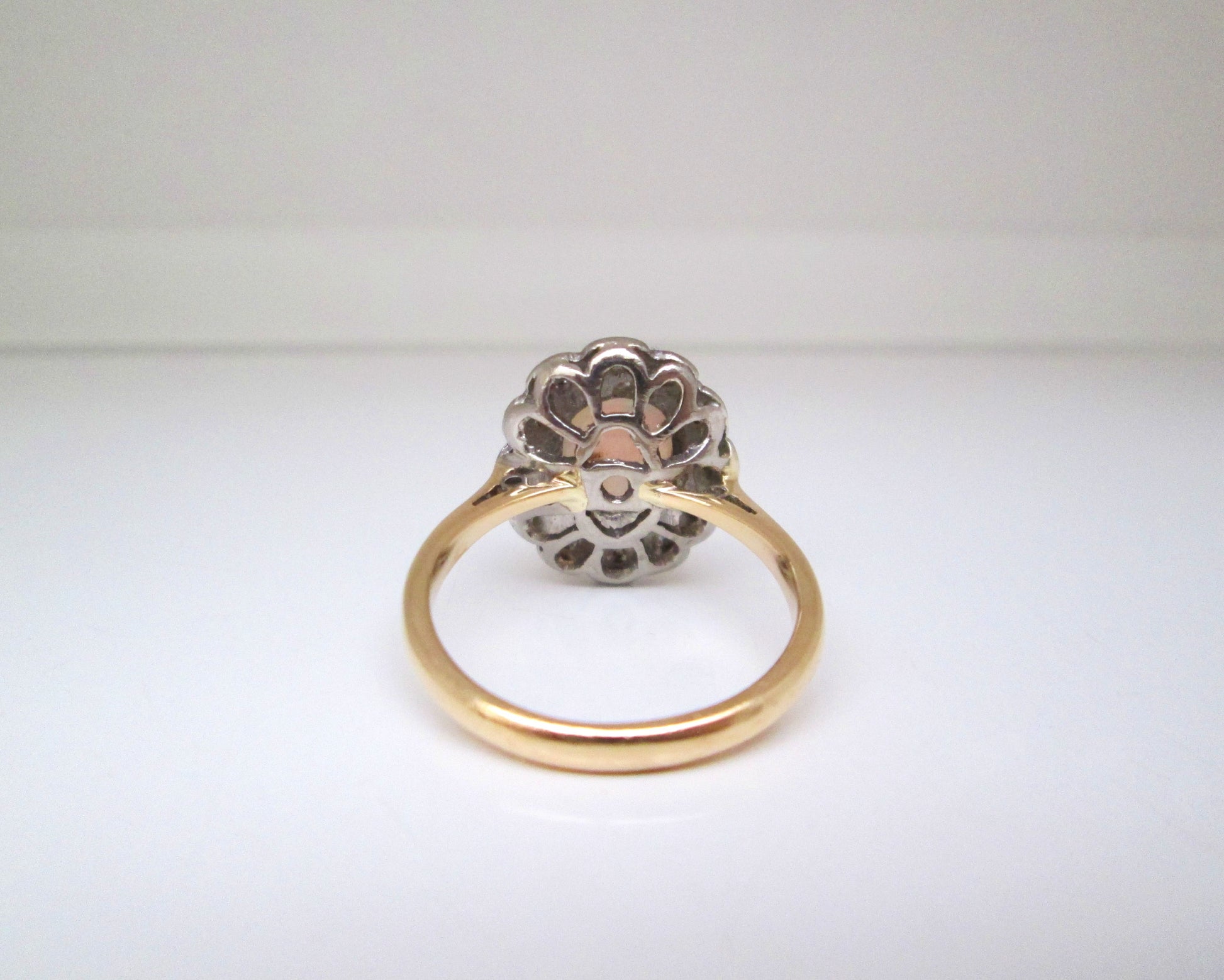 18ct Yellow Gold & Platinum Opal & Diamond Halo Cluster Ring