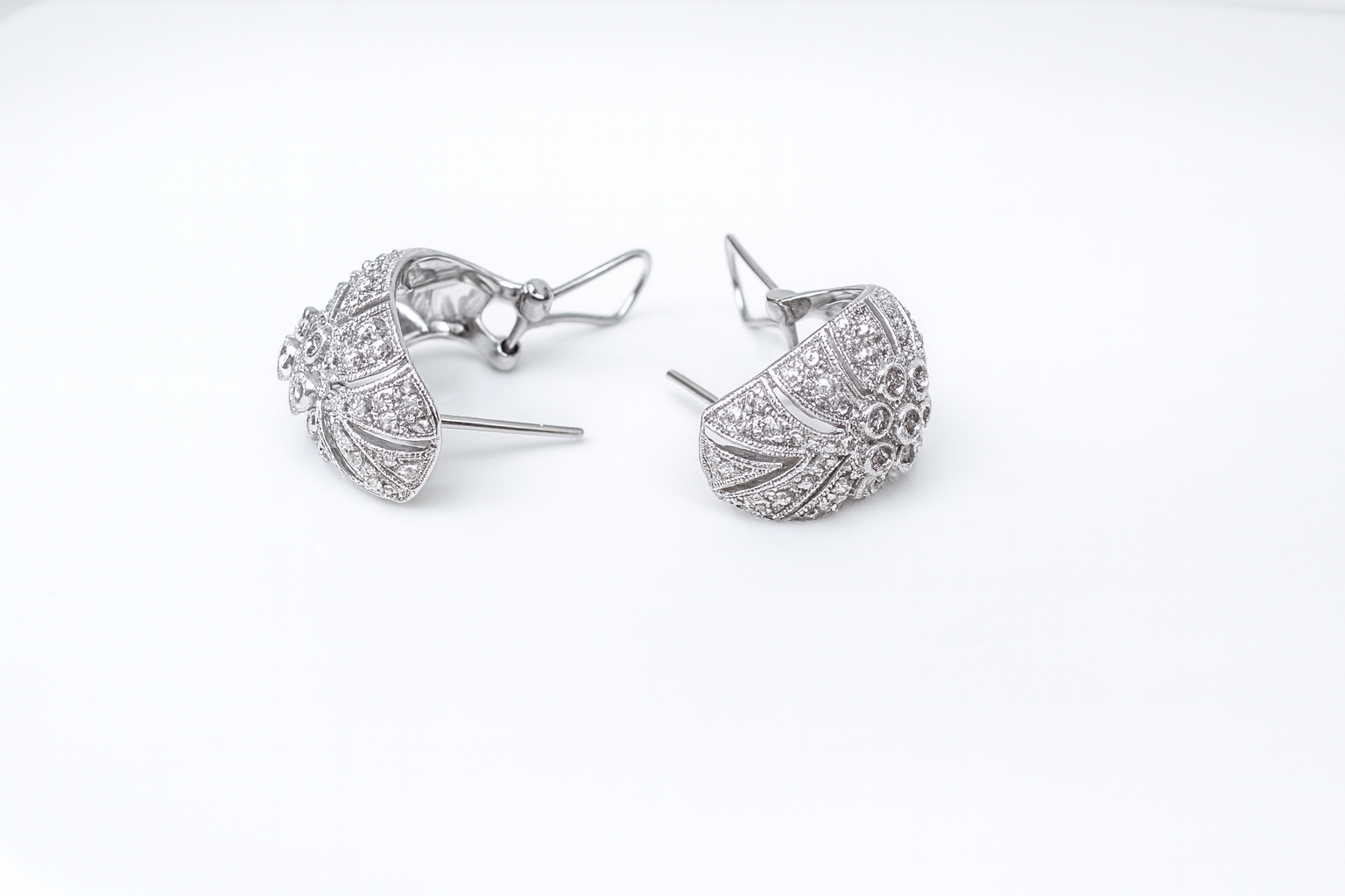 14ct White Gold Diamond Dome Cluster Earrings - 106 Natural Diamonds • Omega Backs