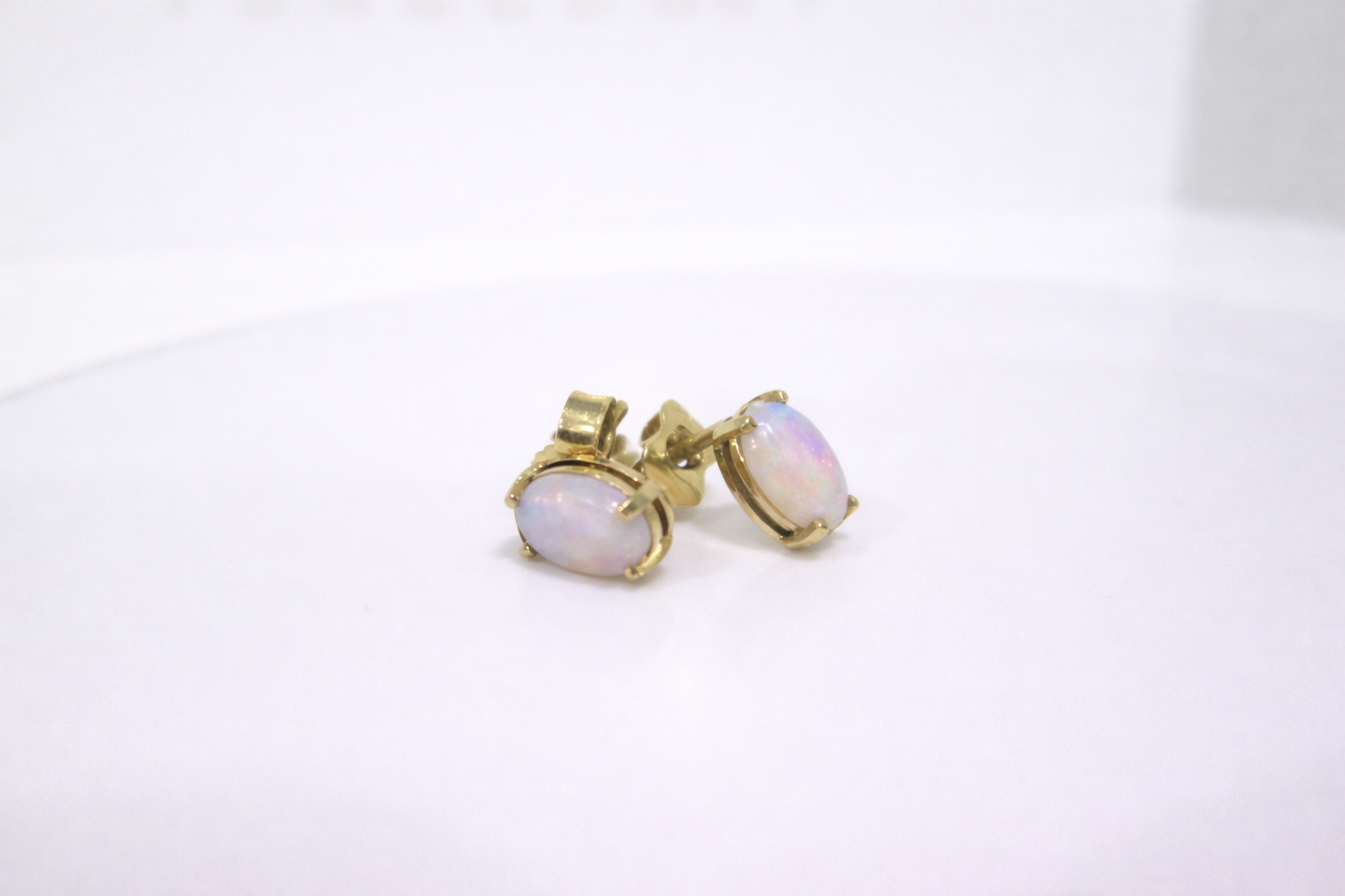 14ct Gold Natural White Opal Petite Stud Earrings