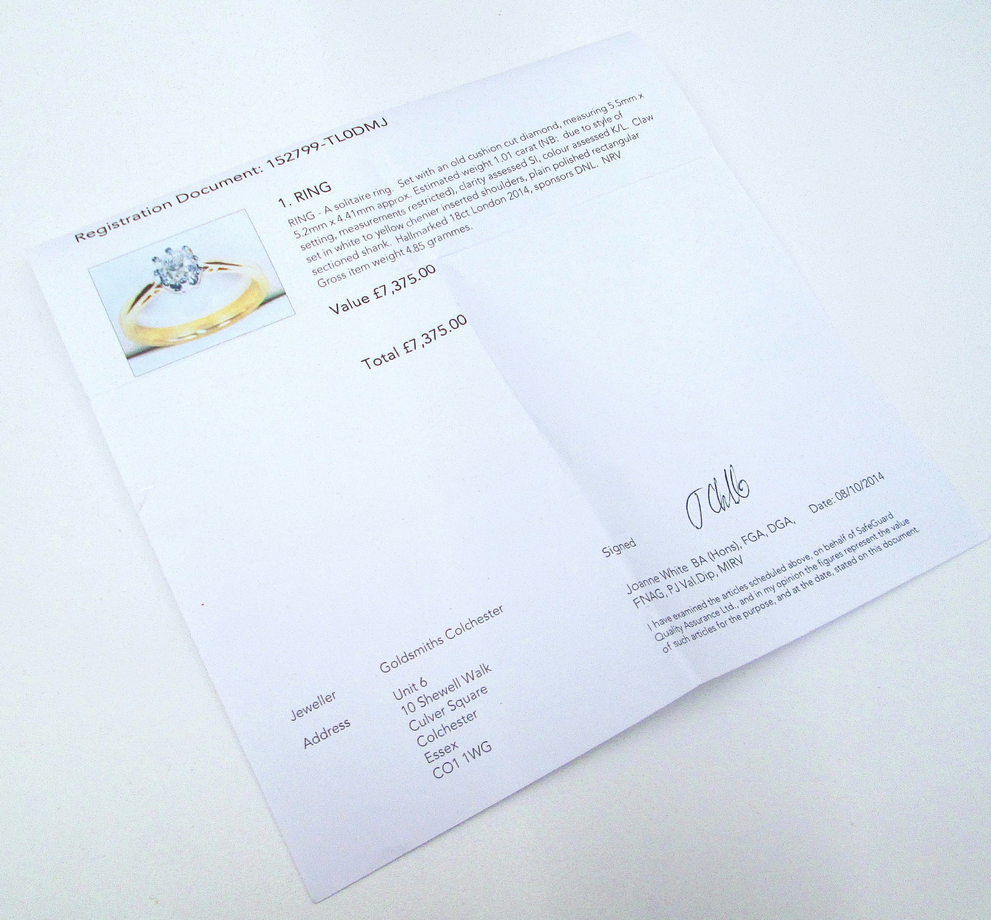 The ring has been professionally cleaned and lightly polished and is presented in a brand-new luxury ring box, accompanied by a valuation certificate.