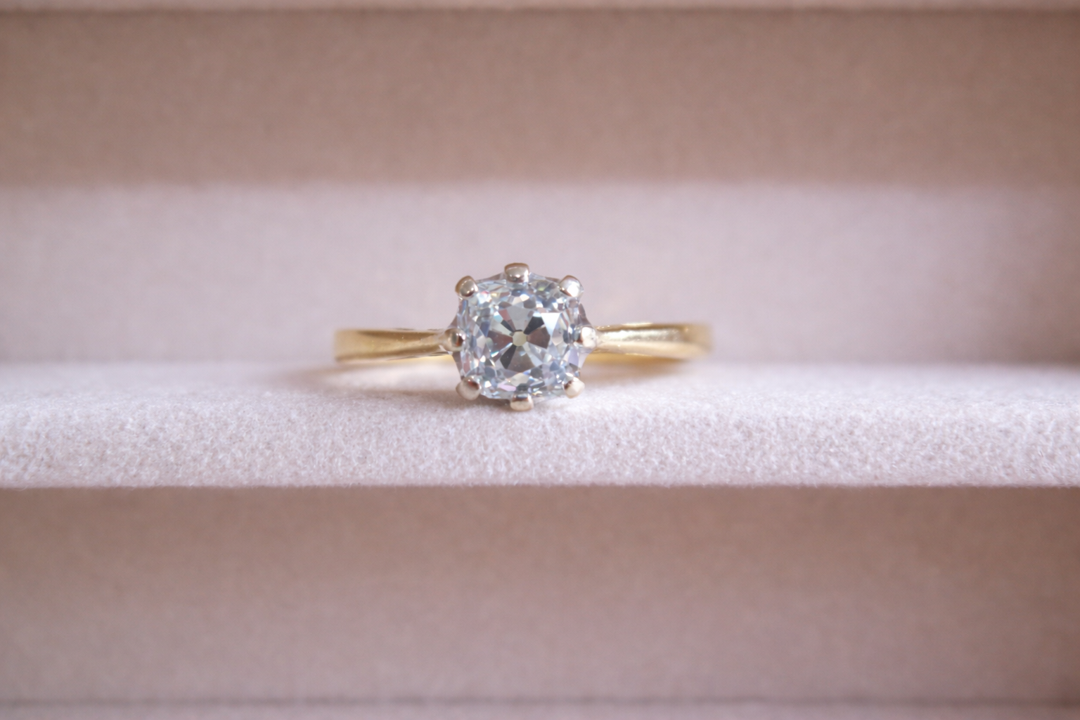A Beautiful Old Mine-Cut Natural Diamond Solitaire Ring